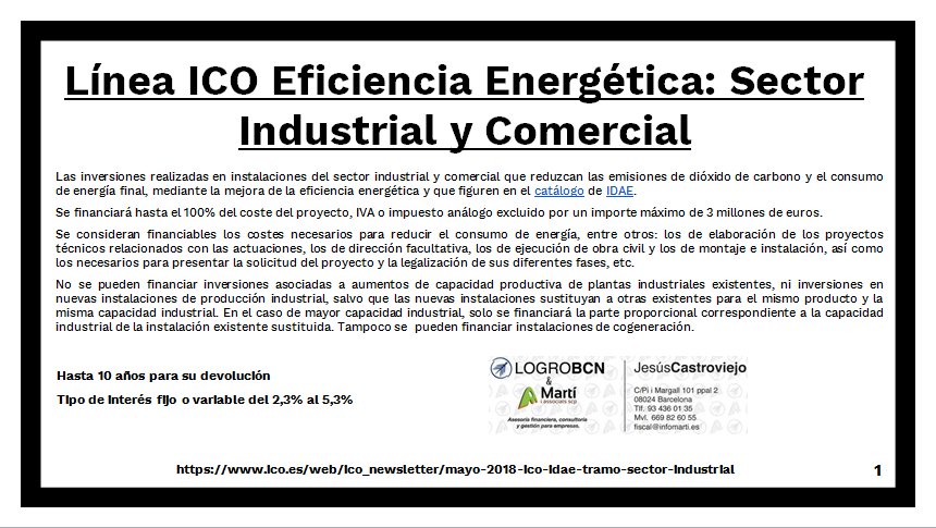Línea ICO Eficiencia Energetica. Sector Industrial y Comercial